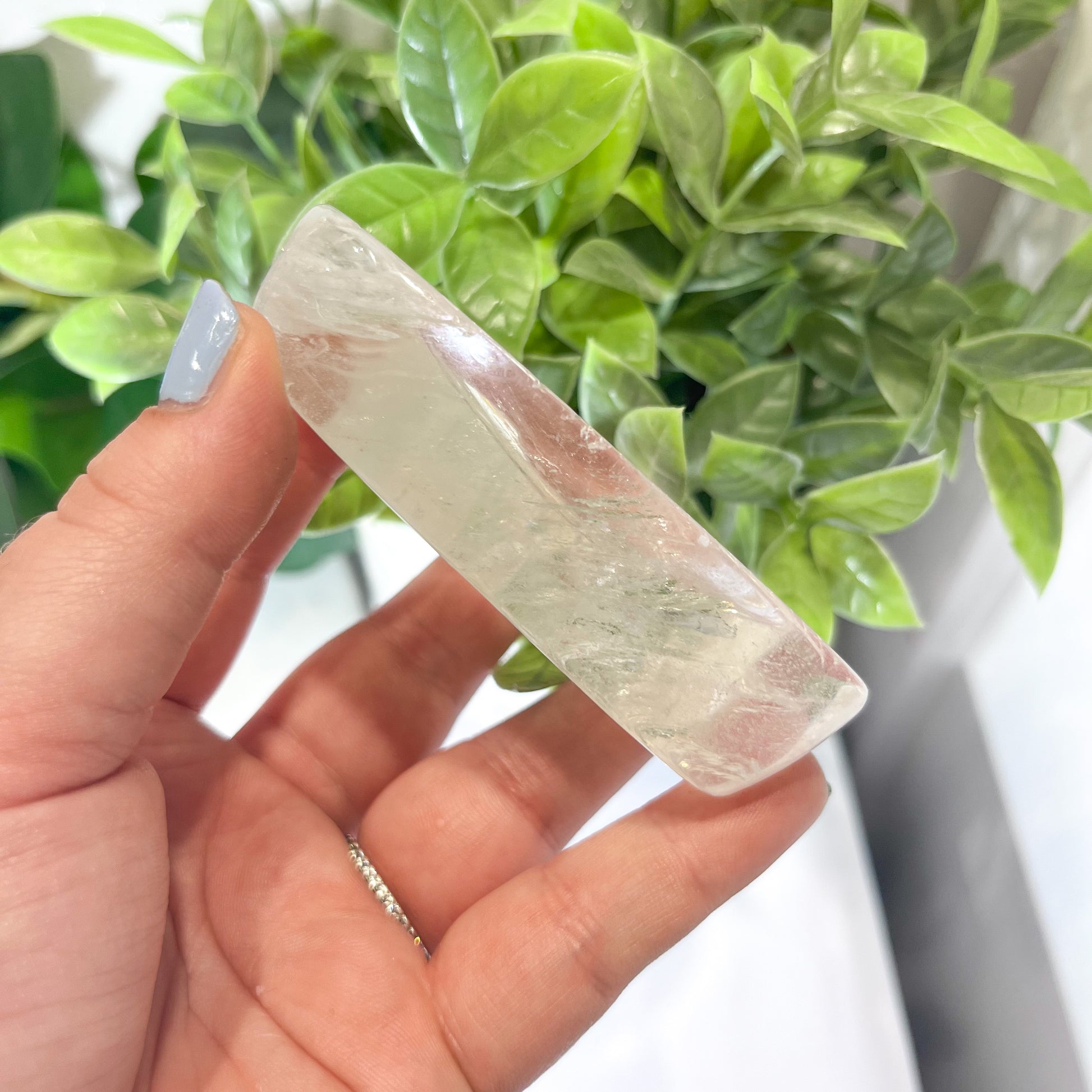 A beautiful cloud shaped clear quartz bowl with rainbows. Perfect for small tumblestones, rings or other small accessories.