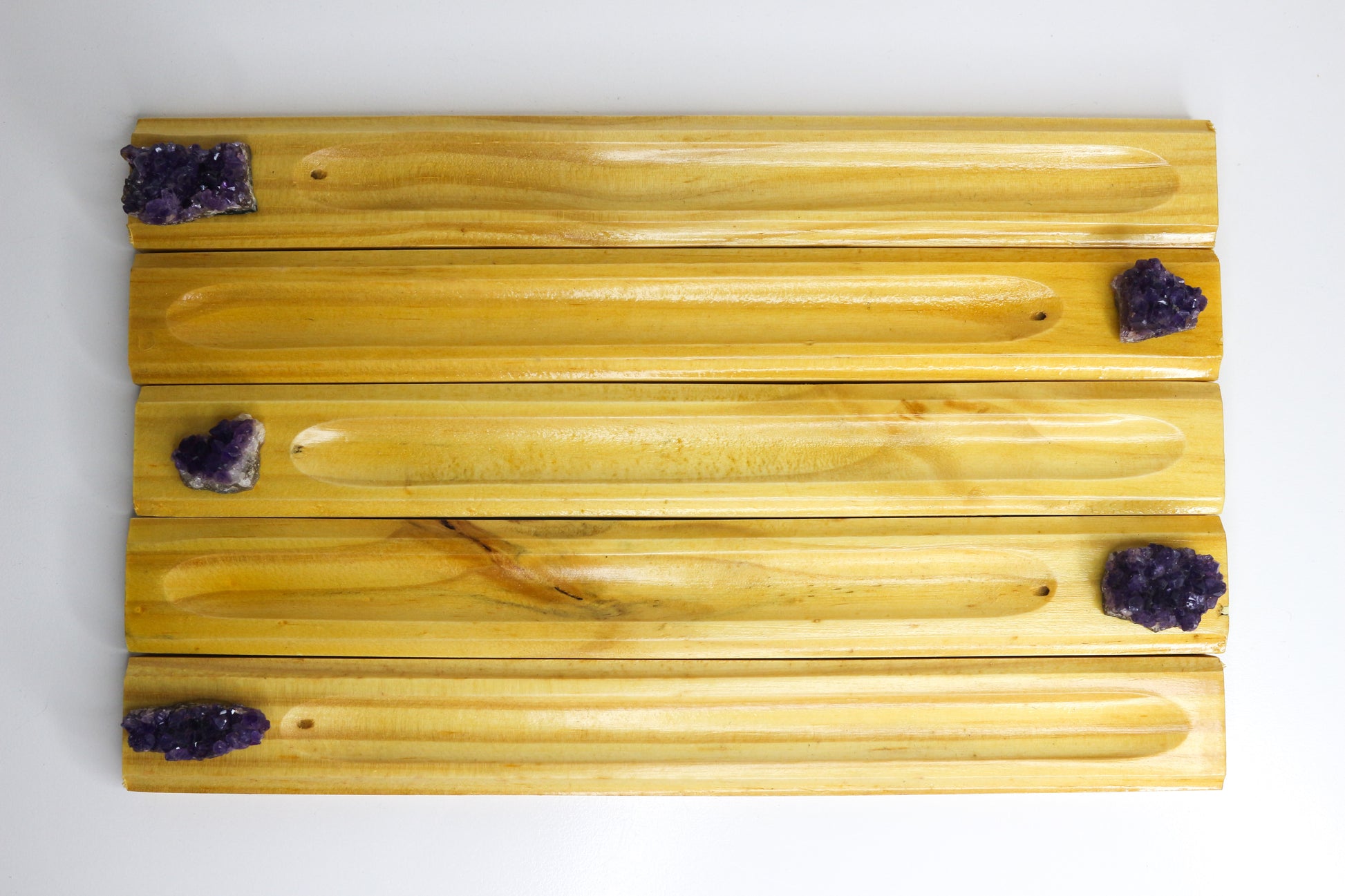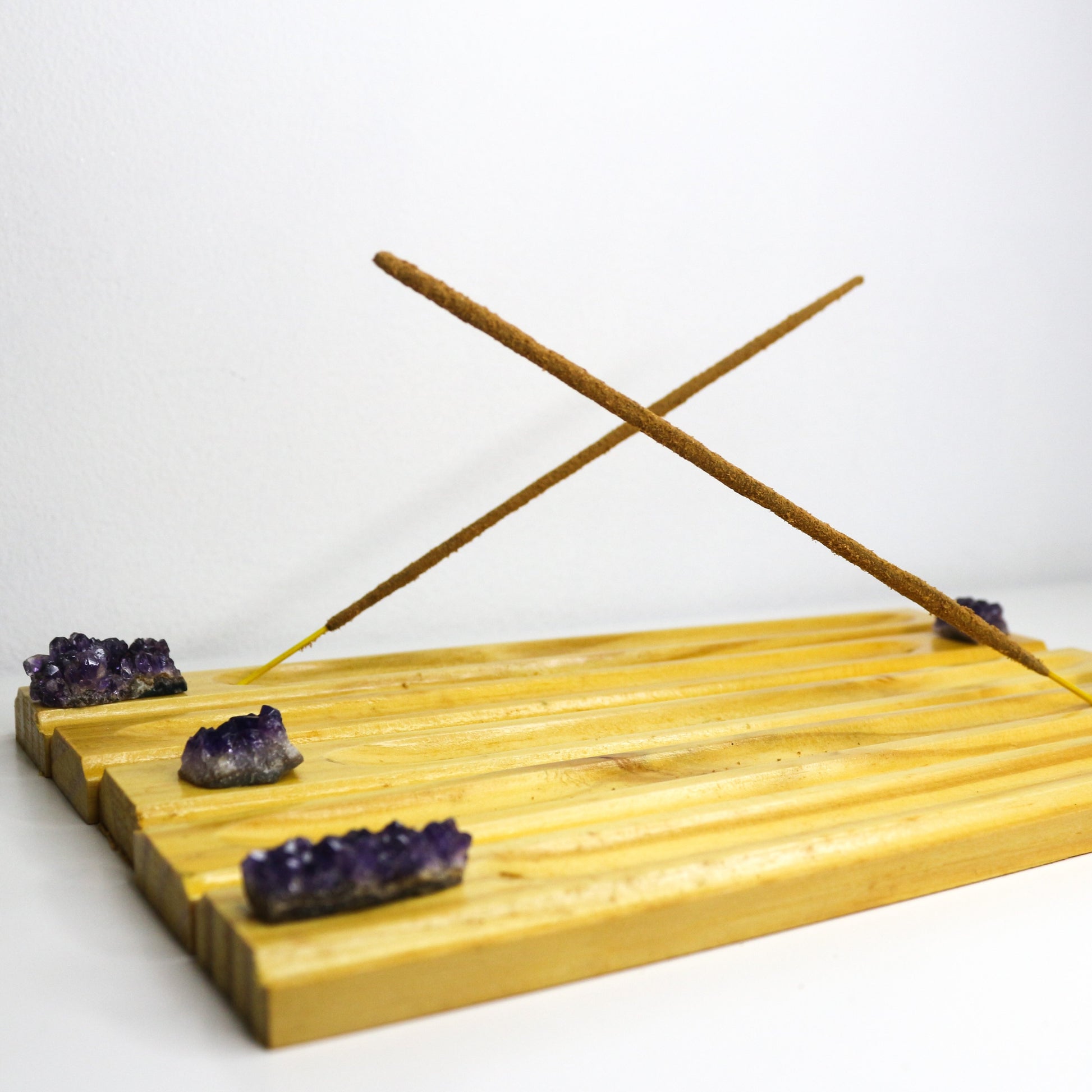 Handmade Wooden Incense Holders with Baby Amethyst Clusters