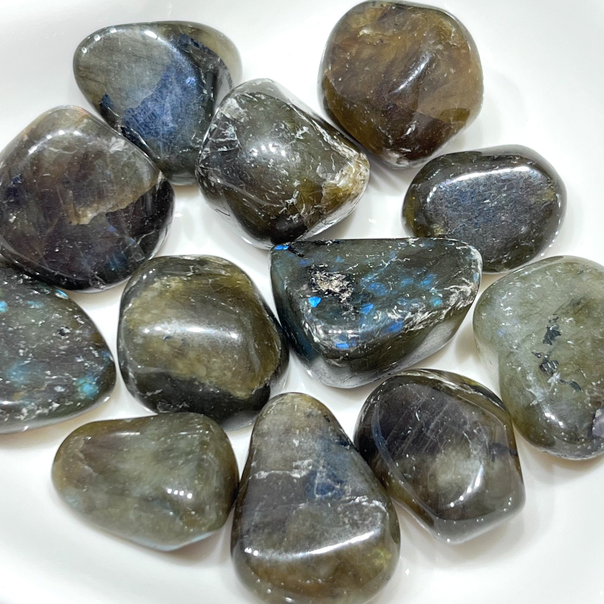 These Labradorite tumblestones have the most beautiful blue and golden flashes. Each tumblestone is approx 10-20mm.