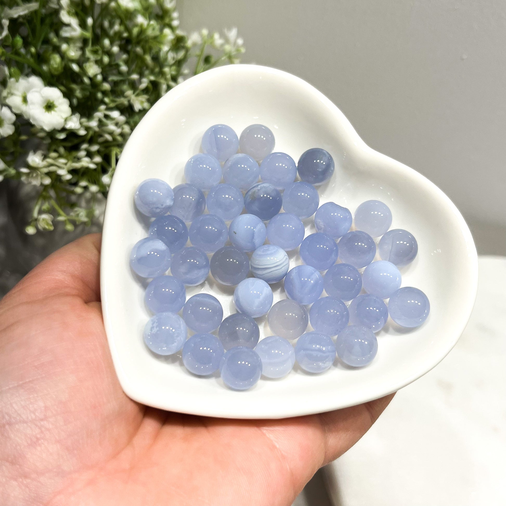 Blue Chalcedony is a rare variety of Chalcedony and a member of the Quartz family. A sphere will be intuitively chosen for you. Each sphere is around 10mm.