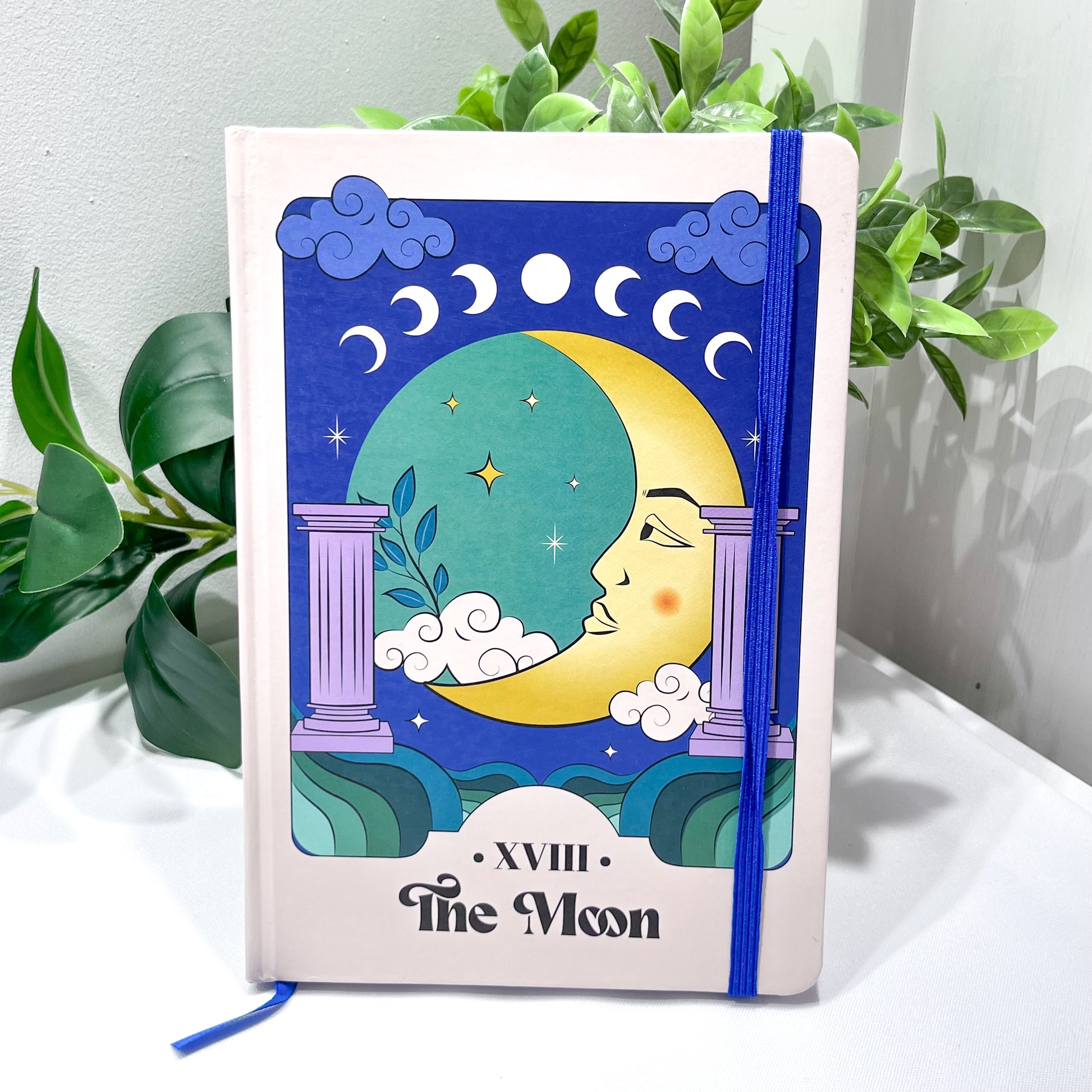 This beautiful celestial-themed A5 notebook features a colourful design inspired by 'The Moon' tarot cards.